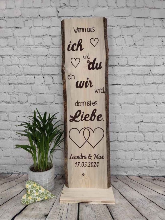 Dieser personalisierte Holz Aufsteller ist das perfekte Hochzeitsgeschenk. Auch zur goldenen Hochzeit oder zu einem anderem Jubiläum passt diese Geschenkidee wunderbar.